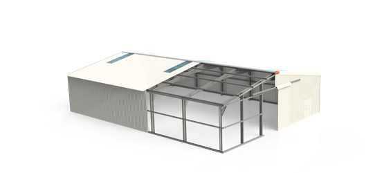 - cladding (walls + roof) with pre-painted galvanised sheeting