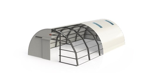- arched steel hangar with elegant lines